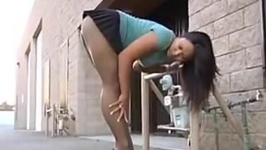 "Flat chested Thai teen rides a hairy shaft in heels"