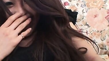 "Eve is a black haired Asian girl, she gets naked showing off"