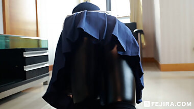 "Fejira com – JK suit girl in leather cleaning room"