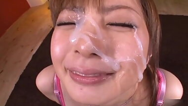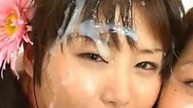 "Blonde Japanese Squirts and Gets Her Bush Filled with Load in Hot Gangbang"
