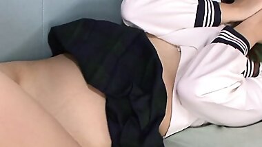 "Super cute Japanese babe lets him play with her pussy"