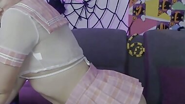 "College Girl in Sexy PANTIES Rubbing COCK with HUGE CUM"