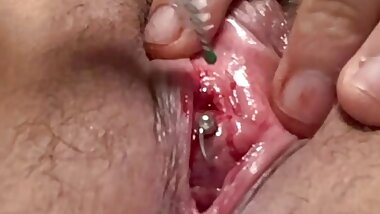 "Part 2 After Dildo action Cum white pink pussy tight ( close-up)"