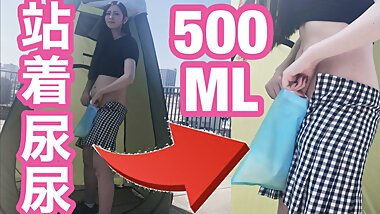 "Chinese Subtitle! Jerking off in a large-capacity portable restroom that can be filled with 500ml of pee!"