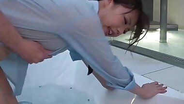 "Cute Japanese Gets Her Nice Tits Bathing with Cum"