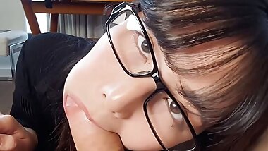 "POV Horny Japanese teacher gives encouragement blowjob and gets big facial!"