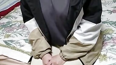 "An adorable Asian in hot uniform rides a big cock in a cowgirl position"