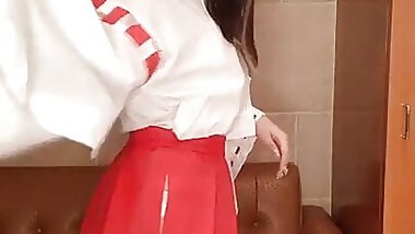 "Japanese girl takes off her lingerie and changes into a maid costume"