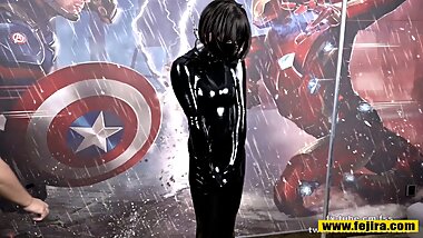 "Fejira com JK girl inside leather clothes latex gloves masturbation orgasm"