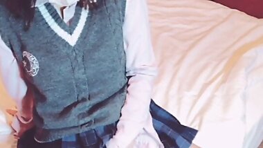 "Masturbation of a cute girl with short-cut hair and beautiful legs in school uniform"