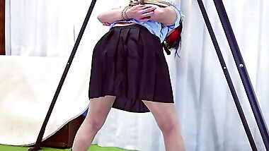"Amateur Tied a married woman in school uniform to SM stand and loves"