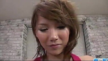 "Hot Akiho Nishimura deals two cocks in nasty threesome"