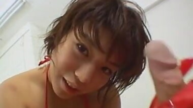 "Red Hot Japanese girl sucks two cocks"
