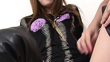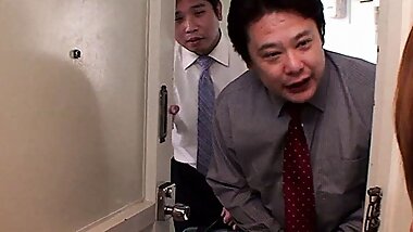 "Japanese woman in job interview lets herself get fucked by the two men who are interviewing and makes big squirt "