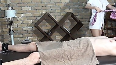 "Japanese Esthetician Gives Electric Massage and Facesitting"