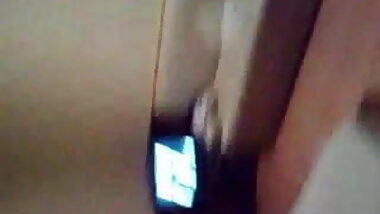 "Lovely brunette babe plugging her cunt with a big dildo"