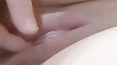 "White Pussy with a Rich White Neckline from a Woman with Small Tits"