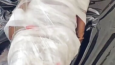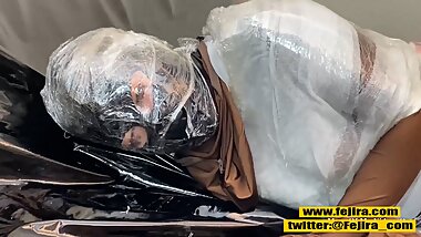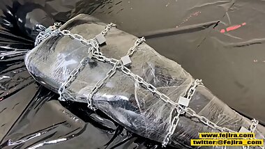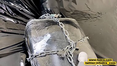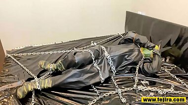 "Fejira com Leather-clad woman in bondage with gag orgasm"
