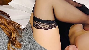 "Amateur Lascivious Woman Gives M-Man a Foot Job with Pantyhose and Thighs to Keep Him on the Edge"
