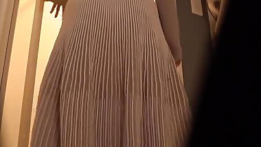 "Slender Beautiful Girl Changing into Bikini"