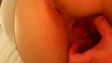 "HOT SLUT SPREADS LEGS WIDE AS LOVER THRUSTS HER PUSSY WITH"
