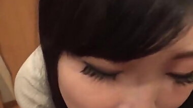 "Timid Asian Yui Oonuki stimulates her clit with a vibrator before sucking her man off "
