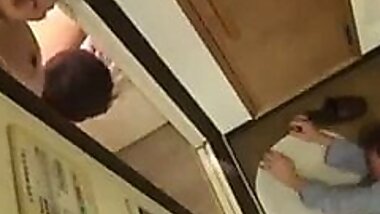 "Naughty babe Noriko teasing and pussy fondling in the bathro"
