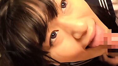 "Lovely Japanese teen gives a hot blowjob in POV"